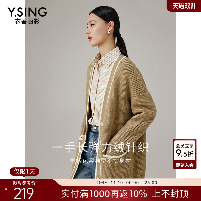 衣香丽影宽松拼色针织开衫女2025年秋冬装新款宽松慵懒风毛衣外套