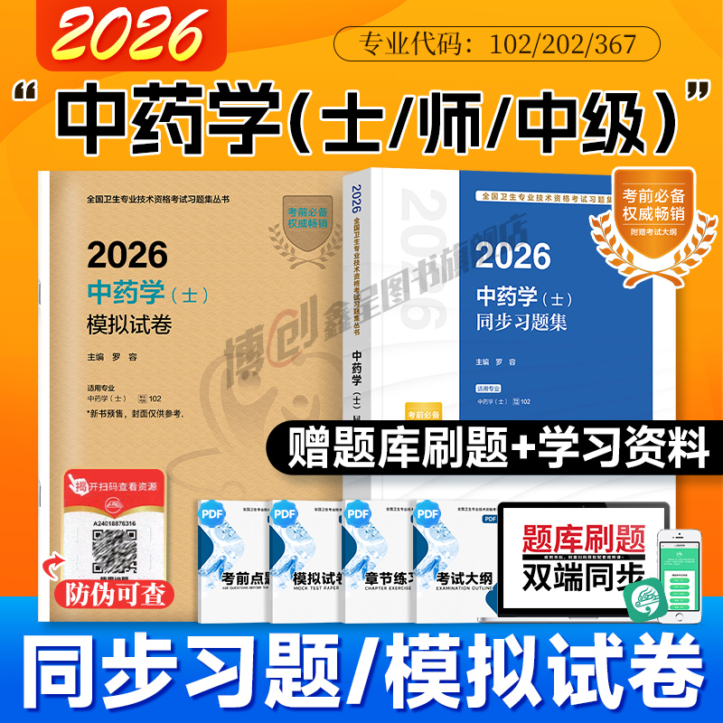 人卫版新版2026年中药学中级资格考试习题集2025主管药师药士教材书历年真题库试卷药剂师士职称资料职业中医练习题试题军医模拟卷