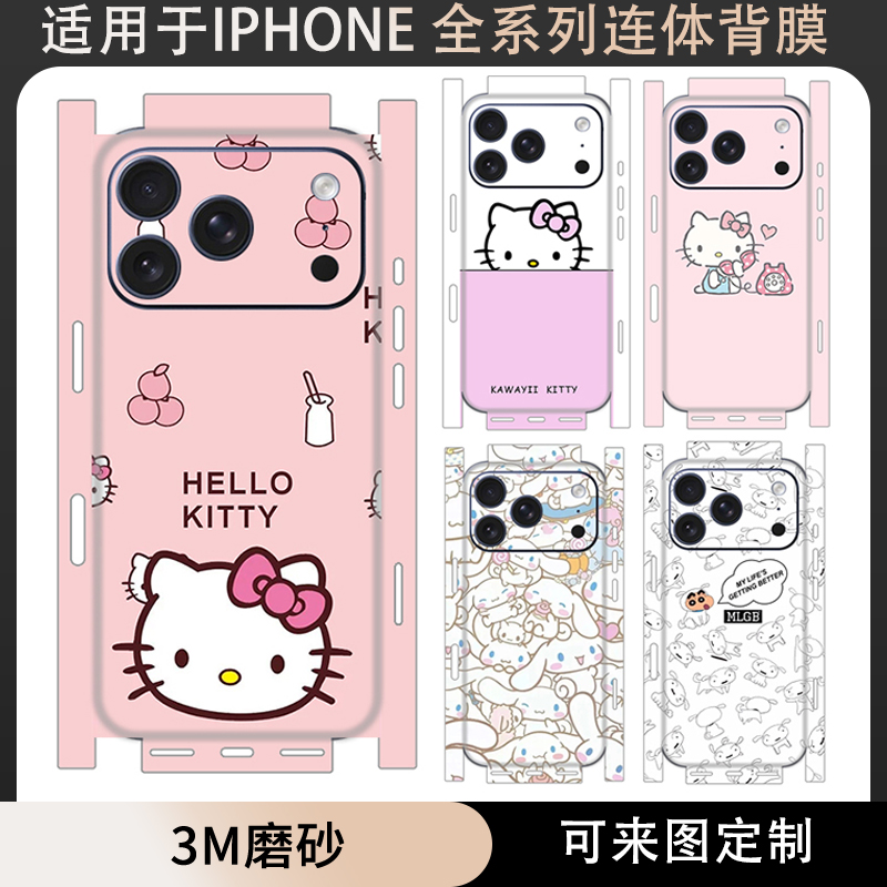 适用于iphone17promax/17pro可爱卡通包边女款背膜16pro改色3m彩膜一6plus彩膜磨砂苹果15/14/13/12/11保护贴
