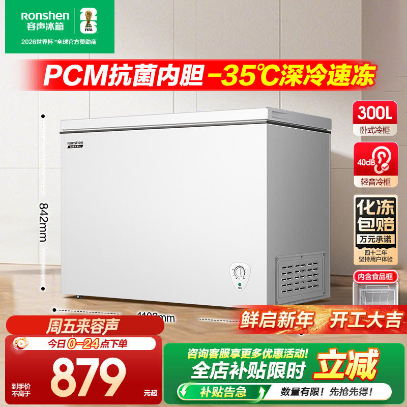 【新品】容声300升家用冰柜商用大容量单温冷柜全冷冻冷藏大型