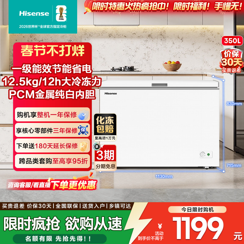 海信350L冰柜大容量减霜家用节能冷藏冷冻全保险冷柜商用囤货冰箱