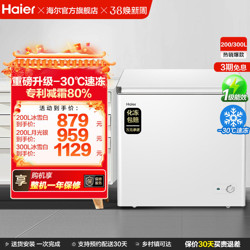 海尔200/300升冰柜商用节能小型家用冷冻冰箱减霜两用冷柜