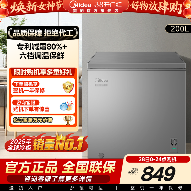 美的200升小冰柜家用小型冷柜全冷冻冷藏商用大容量单温减霜冰箱