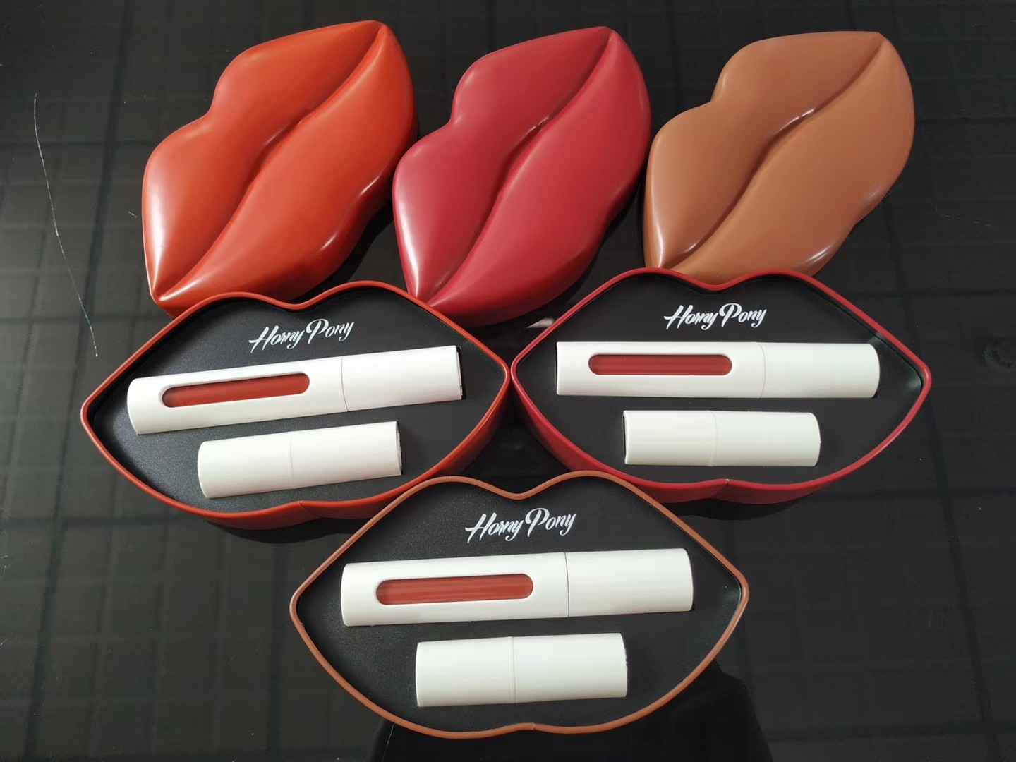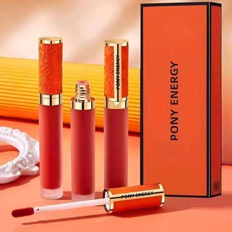 horny pony唇釉套装雾面丝绒茶色豆沙烂番茄色口红套盒持久上色