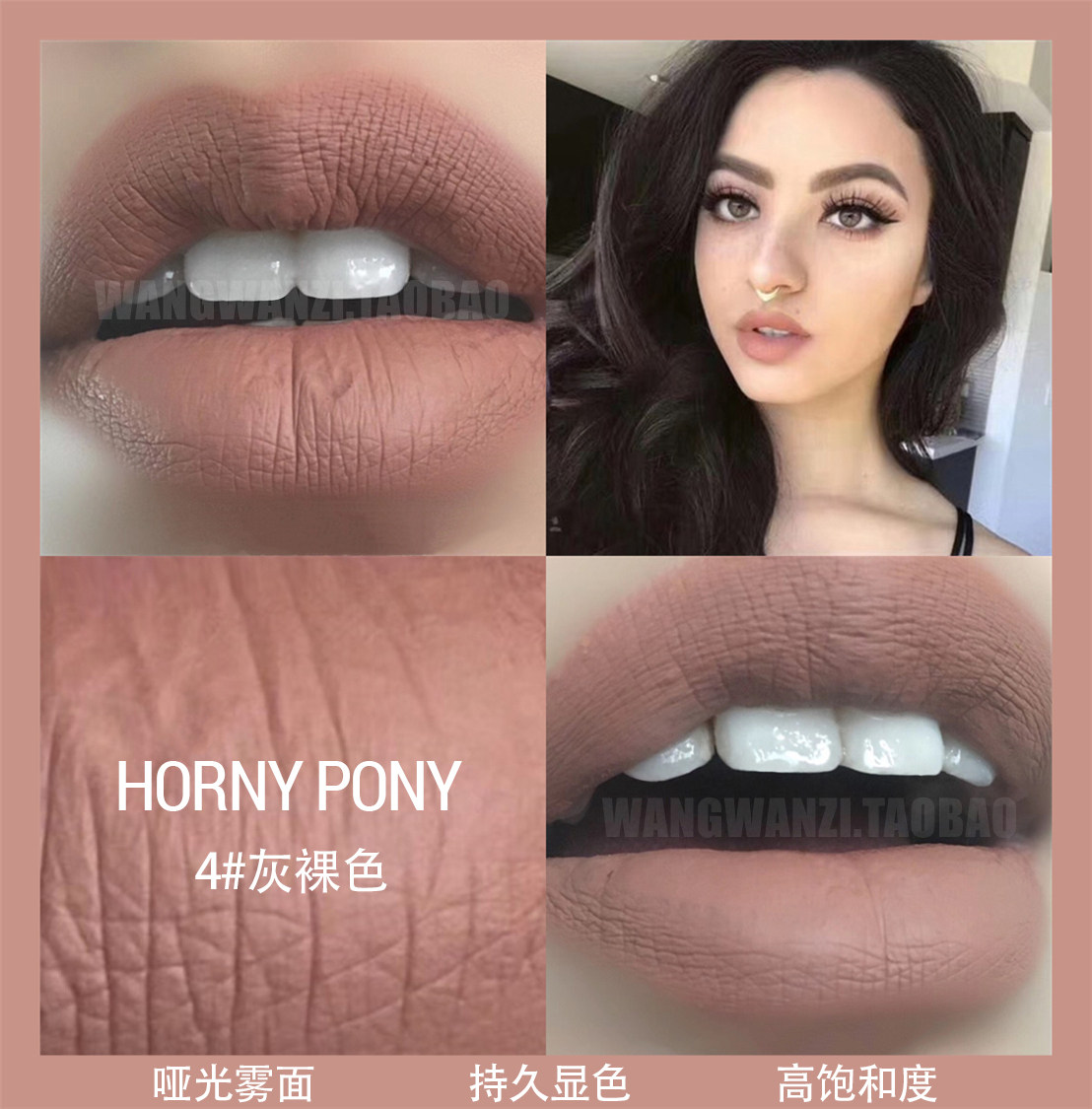 Horny pony 欧美妆 裸妆感 灰裸色 哑光雾面唇釉 网红持久不沾杯