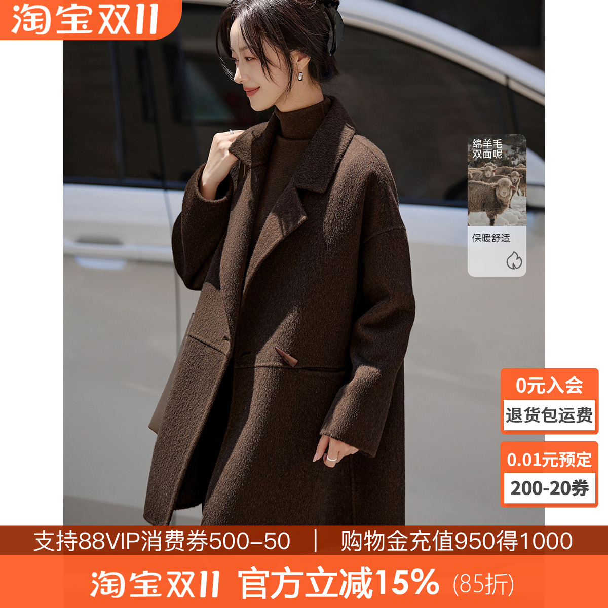 - 双面羊绒女大衣款中长