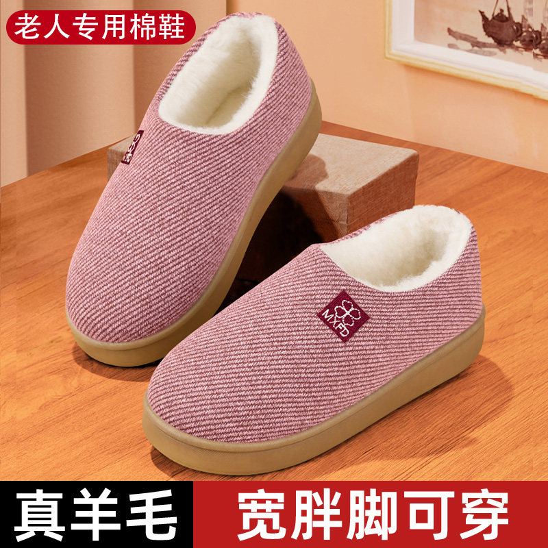 棉拖鞋女冬季加绒加厚2025新款防滑保暖羊毛厚底老年人妈妈老人鞋