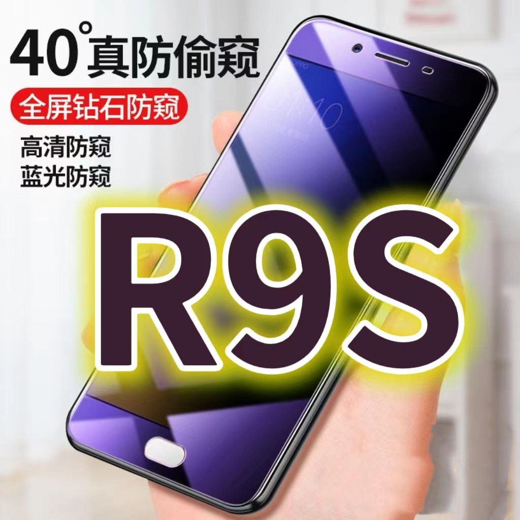适用OPPOR9S防窥膜全屏抗蓝光护眼防偷窥钢化膜r9plus手机膜防偷看屏幕贴膜R9SPLUS黑边防窥玻璃膜紫光防窥视