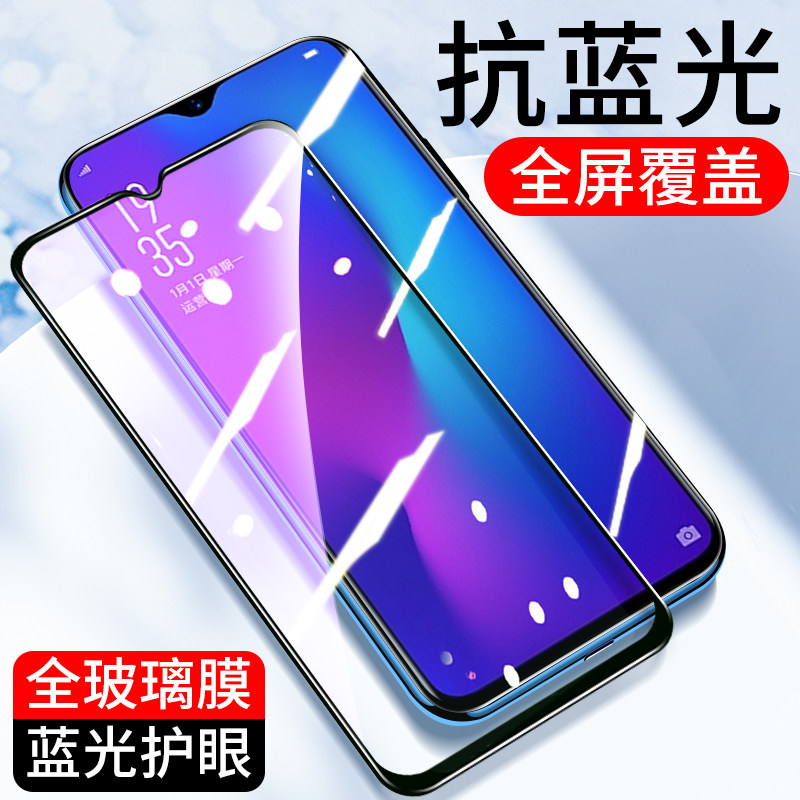 OPPOR9钢化膜全屏玻璃覆盖护眼抗蓝光贴膜R9plus原装高清保护壳防指纹防摔爆手机膜oppor9tm/t无白边刚化硬膜