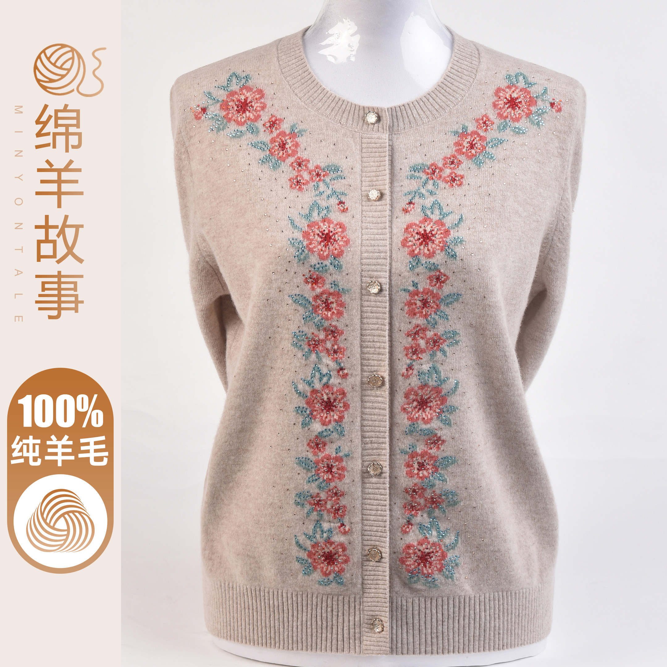 - 中老年羊毛衫开衫女