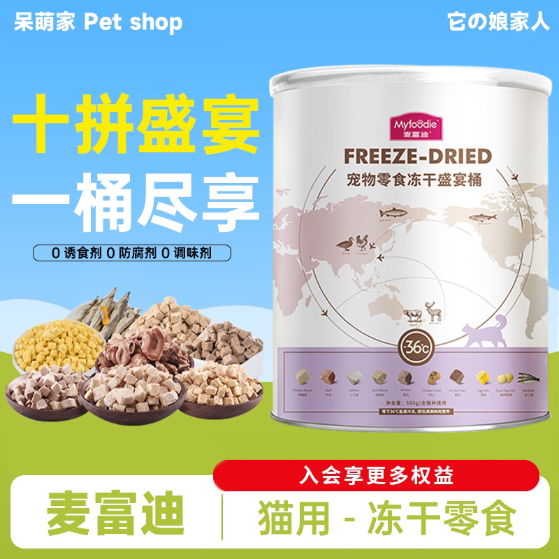 麦富迪冻干盛宴桶猫零食小鱼干鹌鹑冻干鸡胸肉粒混合成幼猫粮罐头