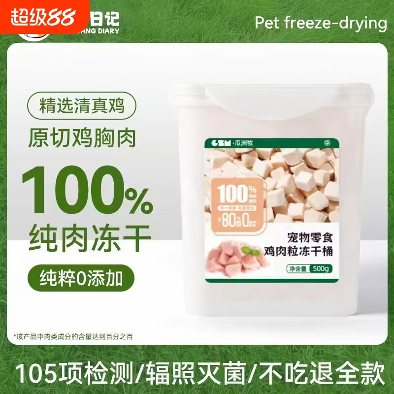 瓜洲牧冻干猫零食鸡胸肉冻干鸡肉粒桶鸭肉鹌鹑猫咪冻干零食主食粮