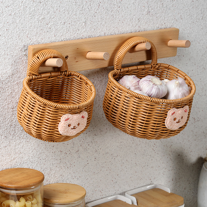 Kens轻奢仿藤厨房姜蒜收纳筐编织学生宿舍壁挂篮阳台装饰挂墙花篮