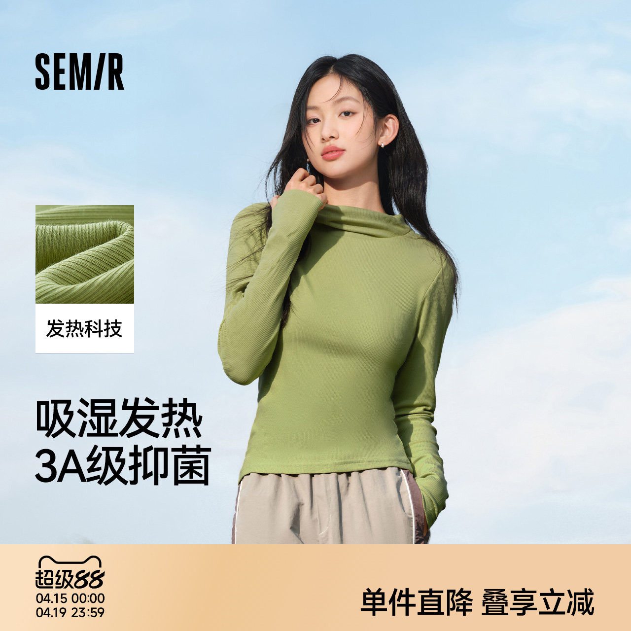森马长袖T恤女百搭半高领女2023冬季新款紧身肌理抓绒打底针织衫