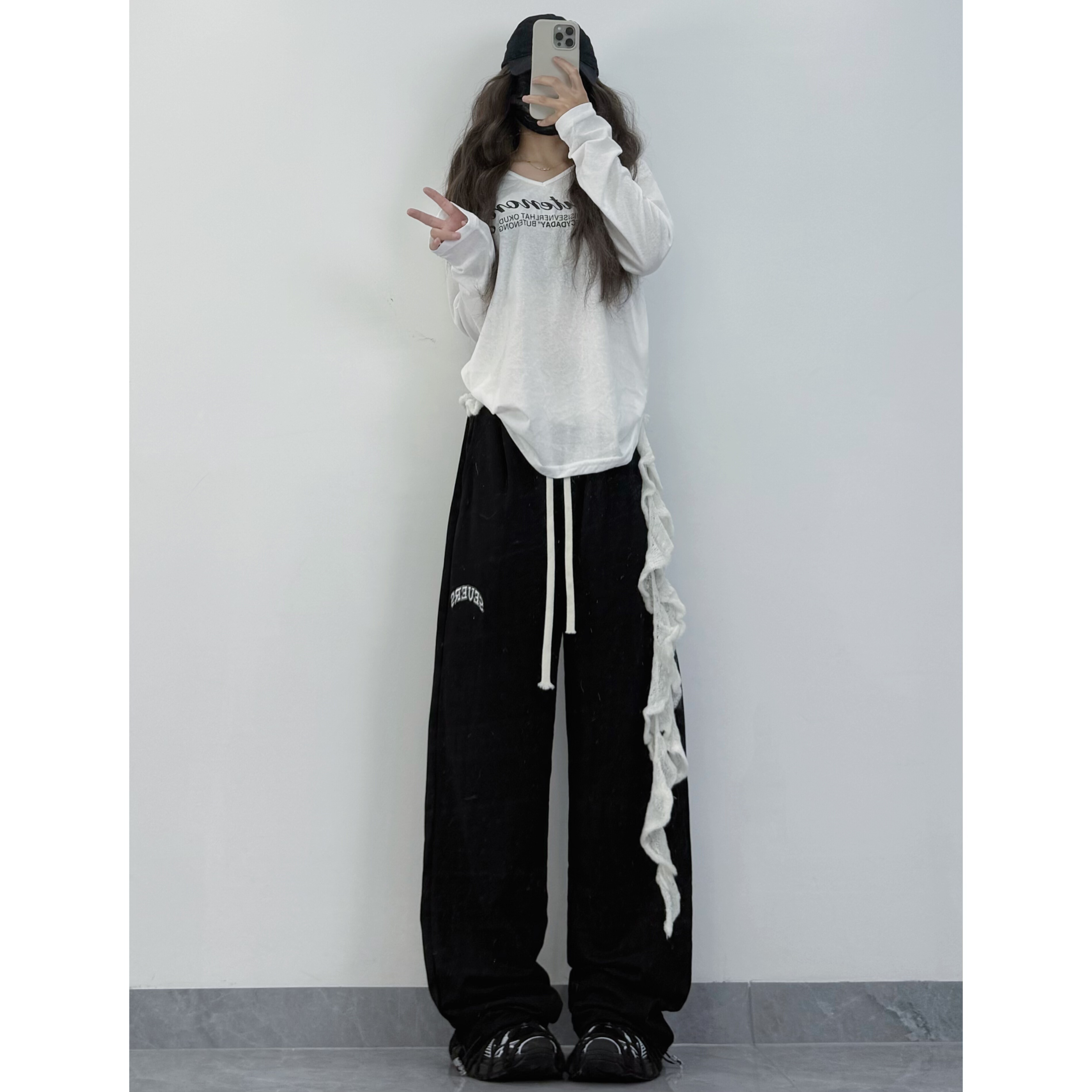 XXBUNI爵士舞服装女秋冬新款宽松显瘦慵懒感字母罩衫运动裤跳舞裤