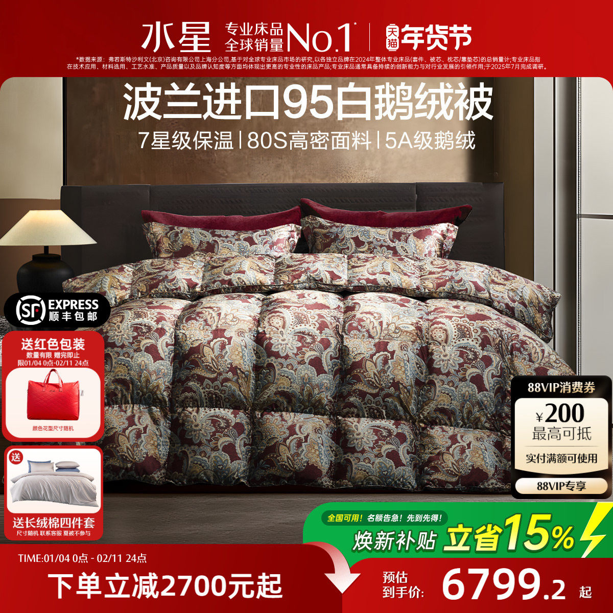 水星家纺波兰进口95白鹅绒被芯5A级羽绒冬被子80S高端结婚床品