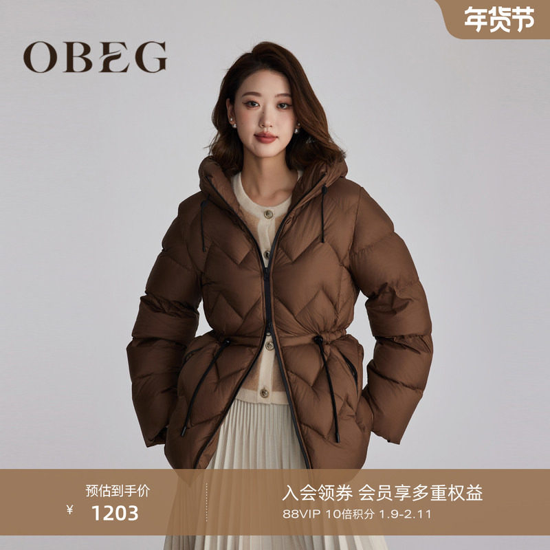 鹅绒】OBEG欧碧倩短款收腰羽绒服女冬加厚连帽中长款外套10484133