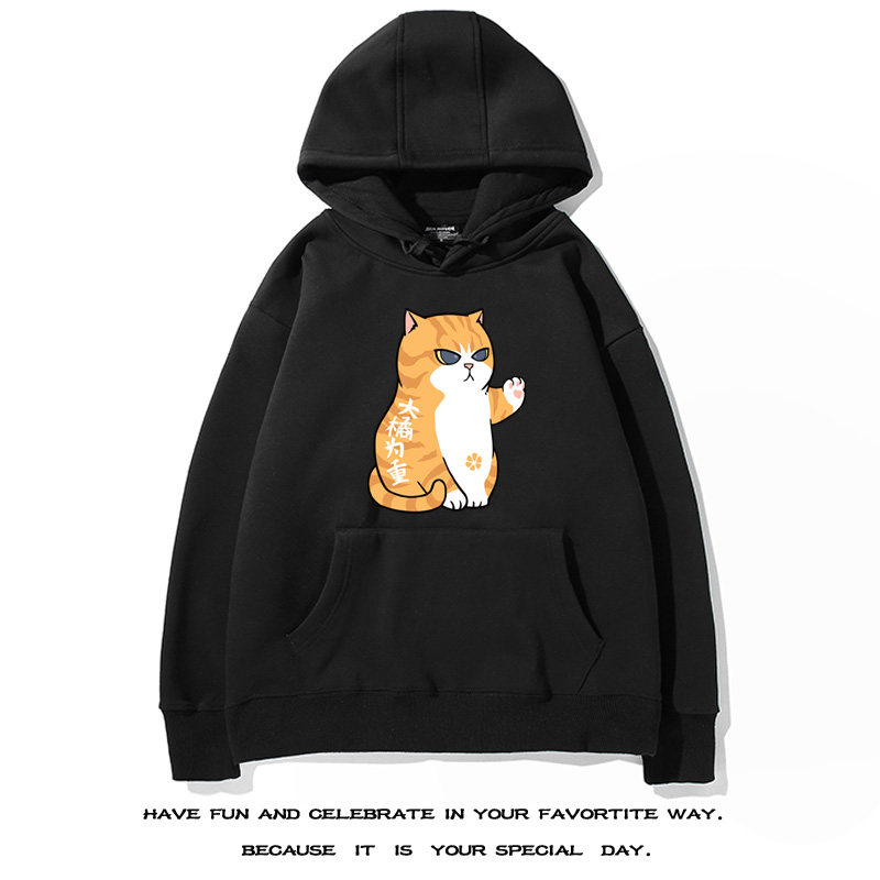 ulzzang大橘为重新宿风简约休闲大橘猫花猫咪男装连帽卫衣绒外套