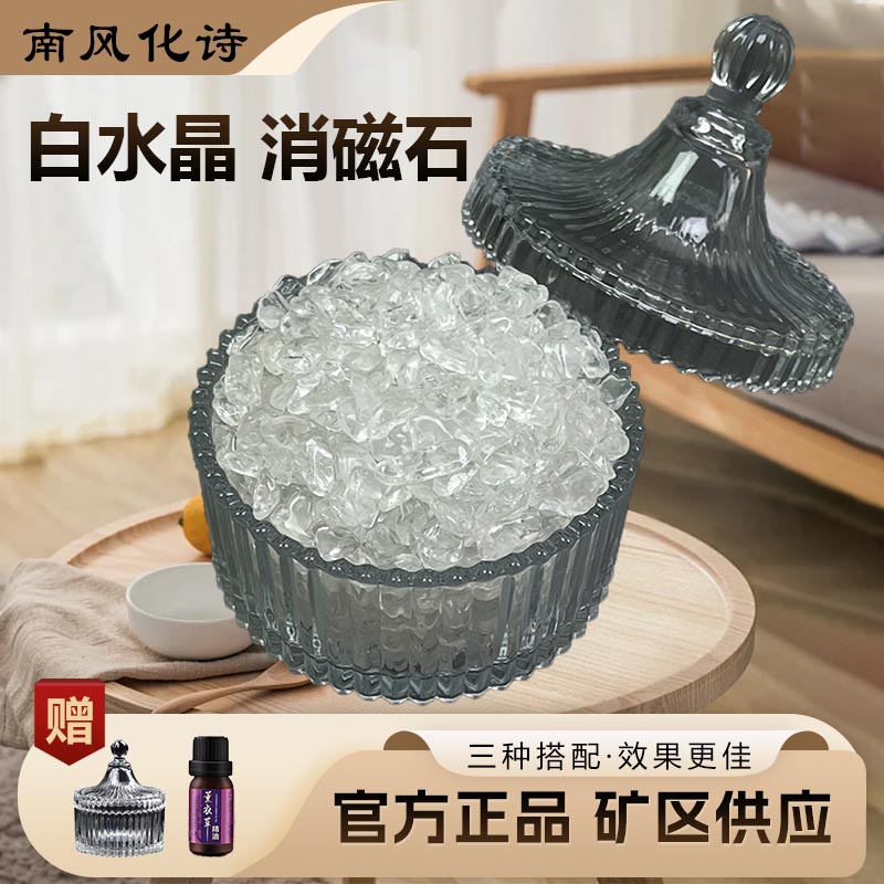 天然消磁白水晶碎石原石标本宝石摆件手链消磁石净化水晶碗消磁碗