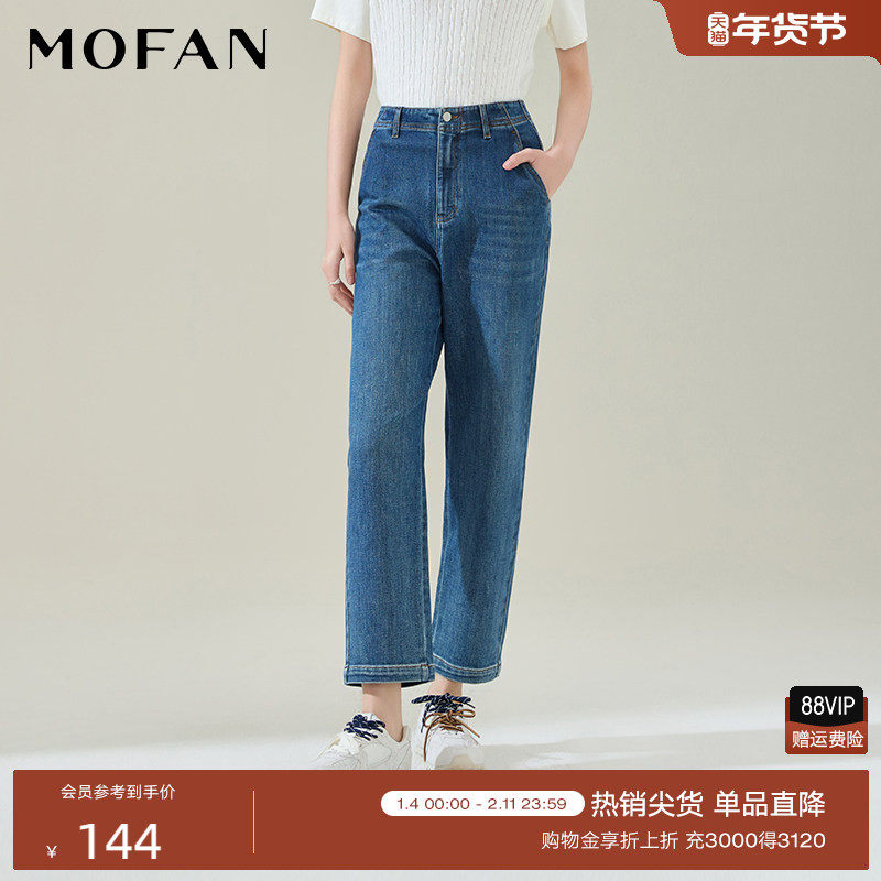 经典复古高腰牛仔裤女MOFAN摩凡2025早春款微锥收脚休闲长裤显瘦