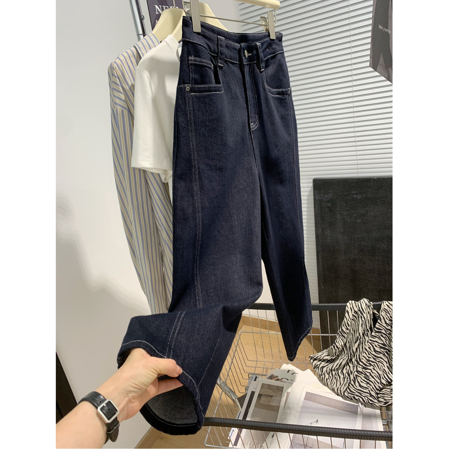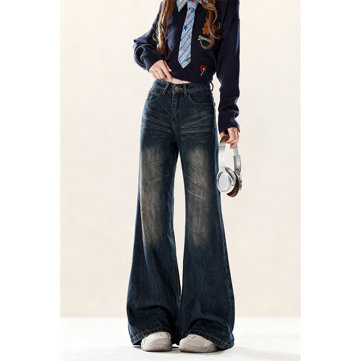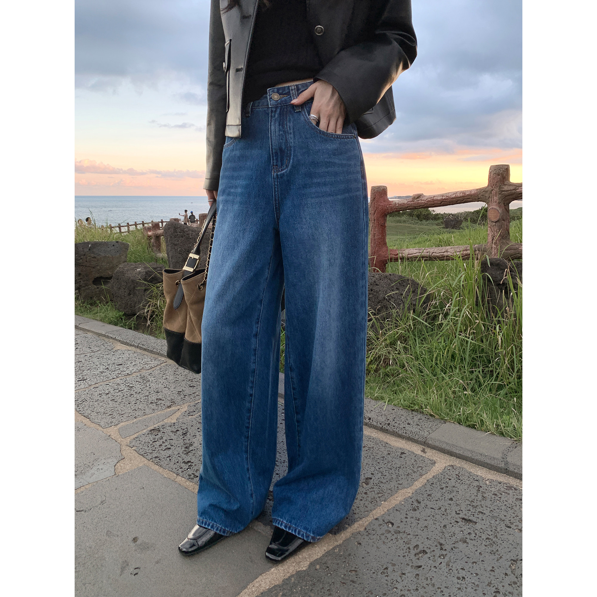 - 女款牛仔裤阔腿