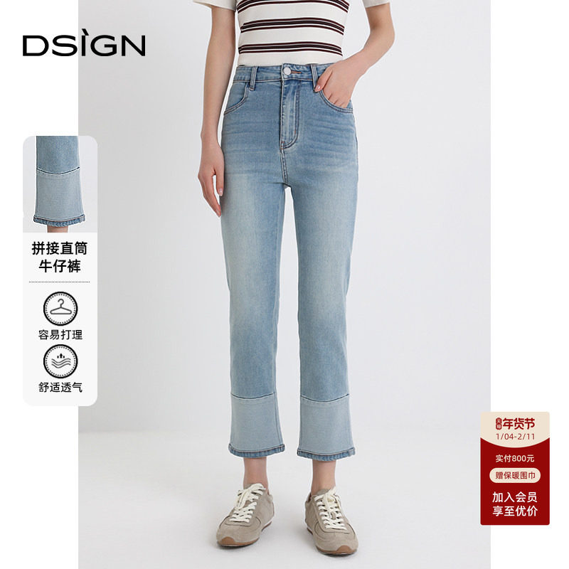 商场同款D.SIGN复古高腰牛仔裤女2025夏新款修身小脚裤显瘦九分裤