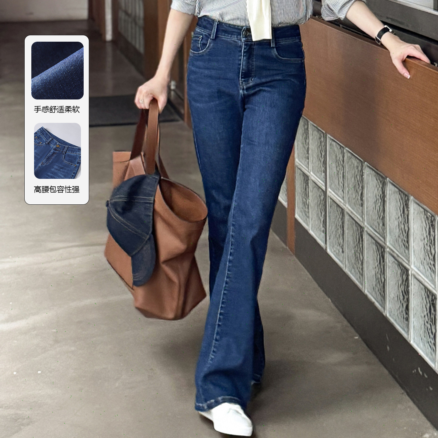 - 牛仔裤微喇叭修身女