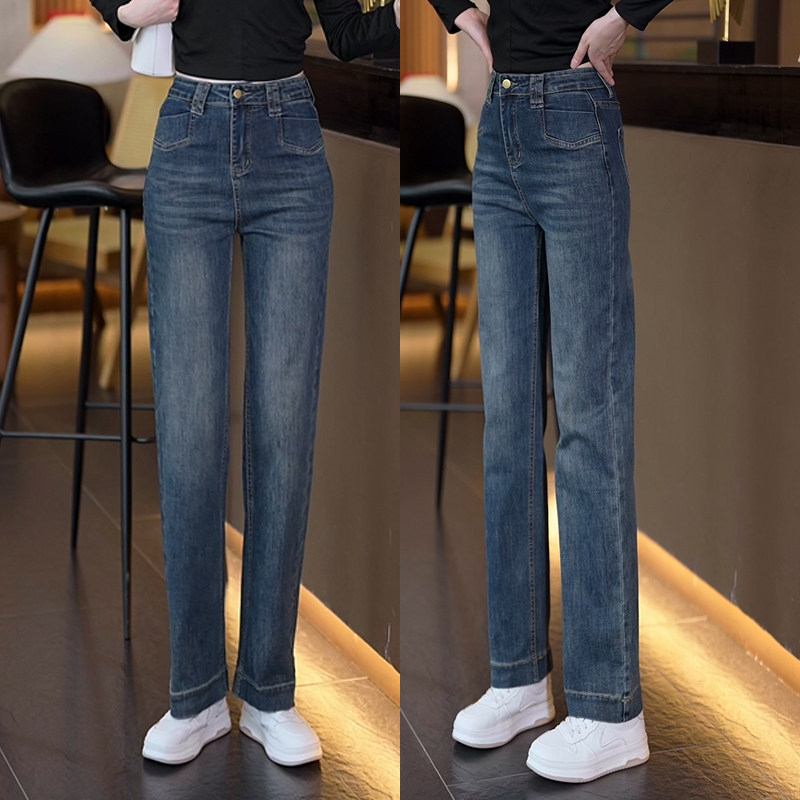 复古高腰牛仔裤女秋季2025新款垂感宽松直筒裤窄版阔腿裤弹力裤子