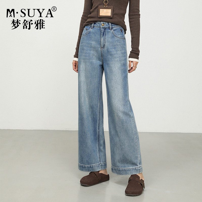MJ STYLE美式复古高腰牛仔裤女2025秋冬新款裤子浅蓝小个子阔腿裤
