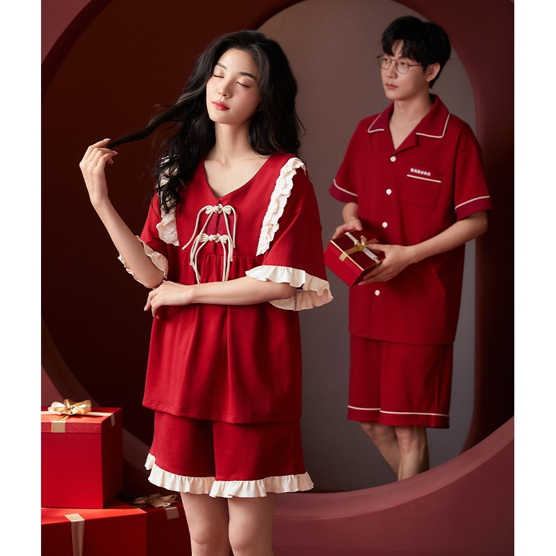 思馨坊红色喜庆情侣睡衣夏季短袖一男一女结婚送闺蜜可外穿家居服
