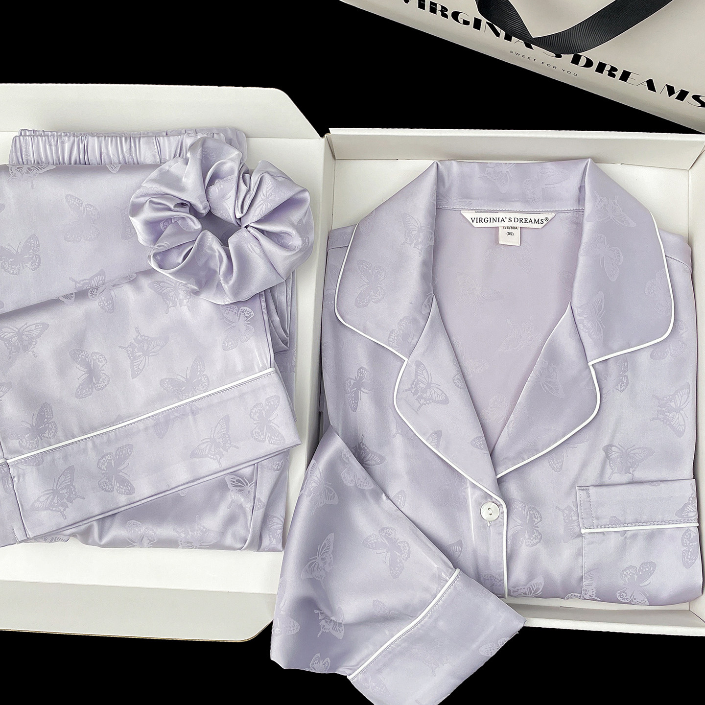 田园风真丝桑蚕丝睡衣女夏季短袖长袖甜美可爱送女友送闺蜜礼盒装