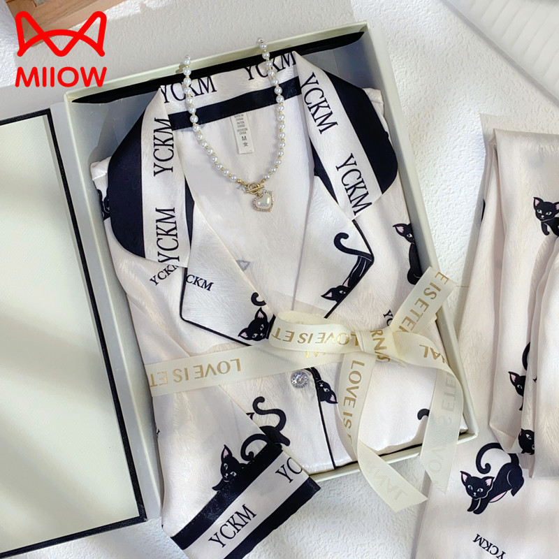 猫人冰丝睡衣女款夏季薄款短袖短裤长裤三件套卡通送闺蜜生日礼盒