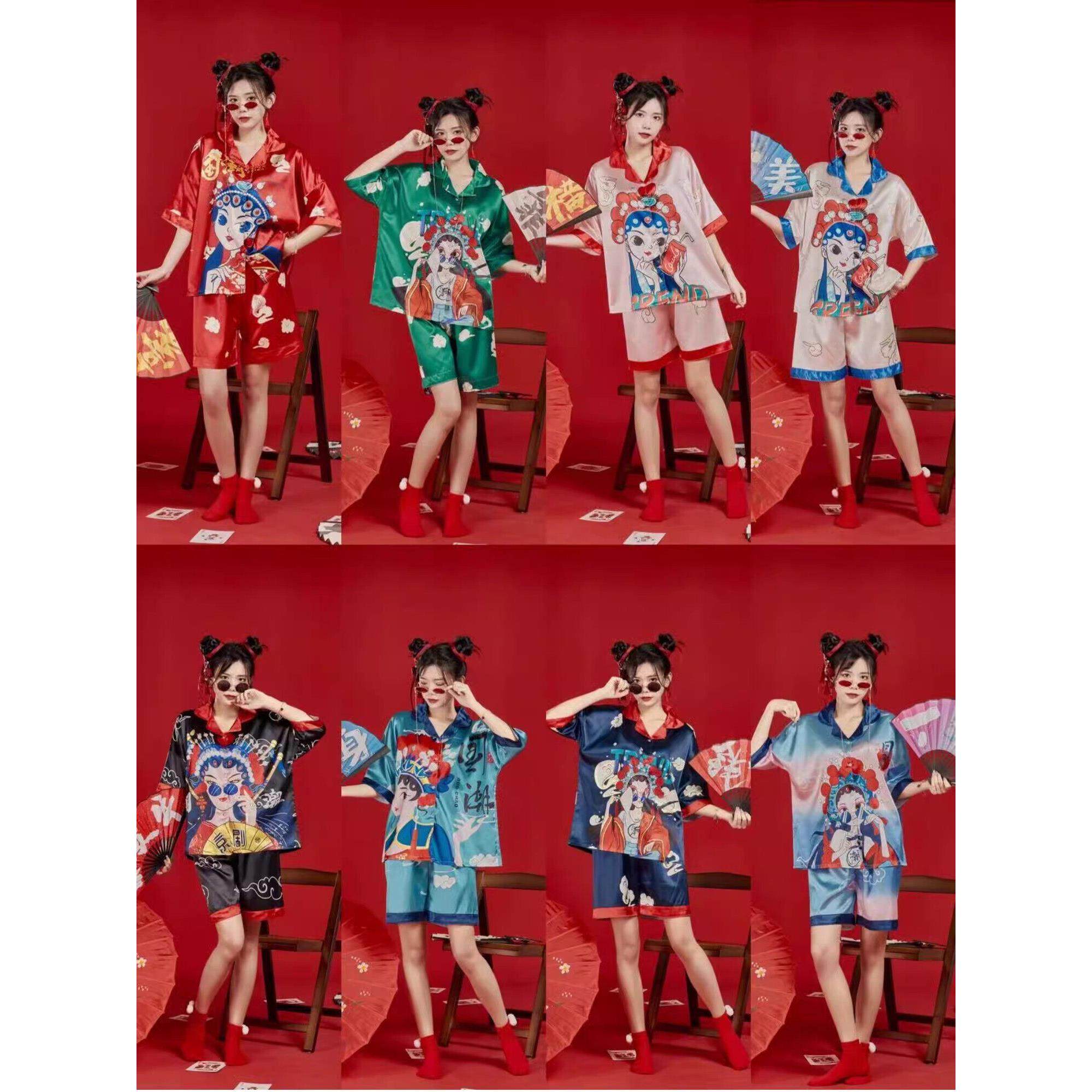 睡衣女冰丝短袖国潮套装2022年新款中国风闺蜜装聚会伴娘团晨袍夏