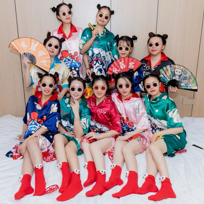 国潮新娘婚礼大码伴娘团晨袍女睡裙搞怪睡袍结婚闺蜜短袖睡衣套装