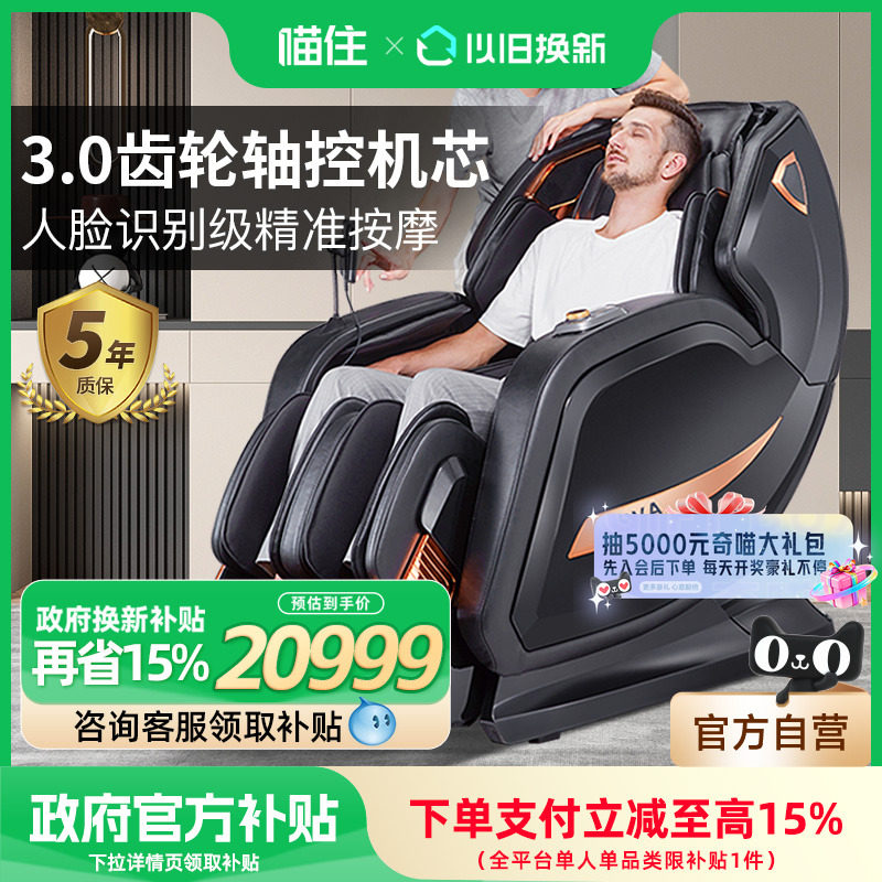奥克斯按摩椅家用全身全自动智能电动多功能豪华太空舱零重力老人