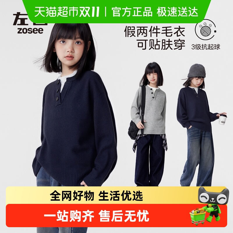 左西童装男童毛衣假两件儿童秋冬季2025新款男孩大童保暖线衣内搭