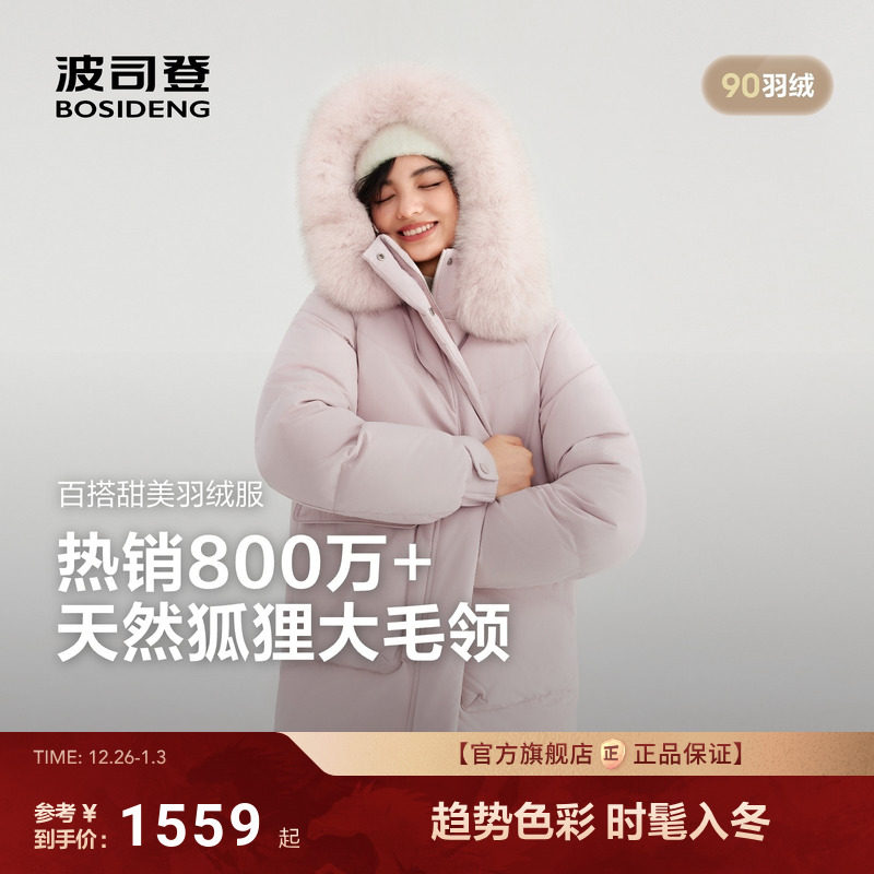 【狐狸毛领】波司登2025新款羽绒服女款时尚休闲中长款甜美保暖