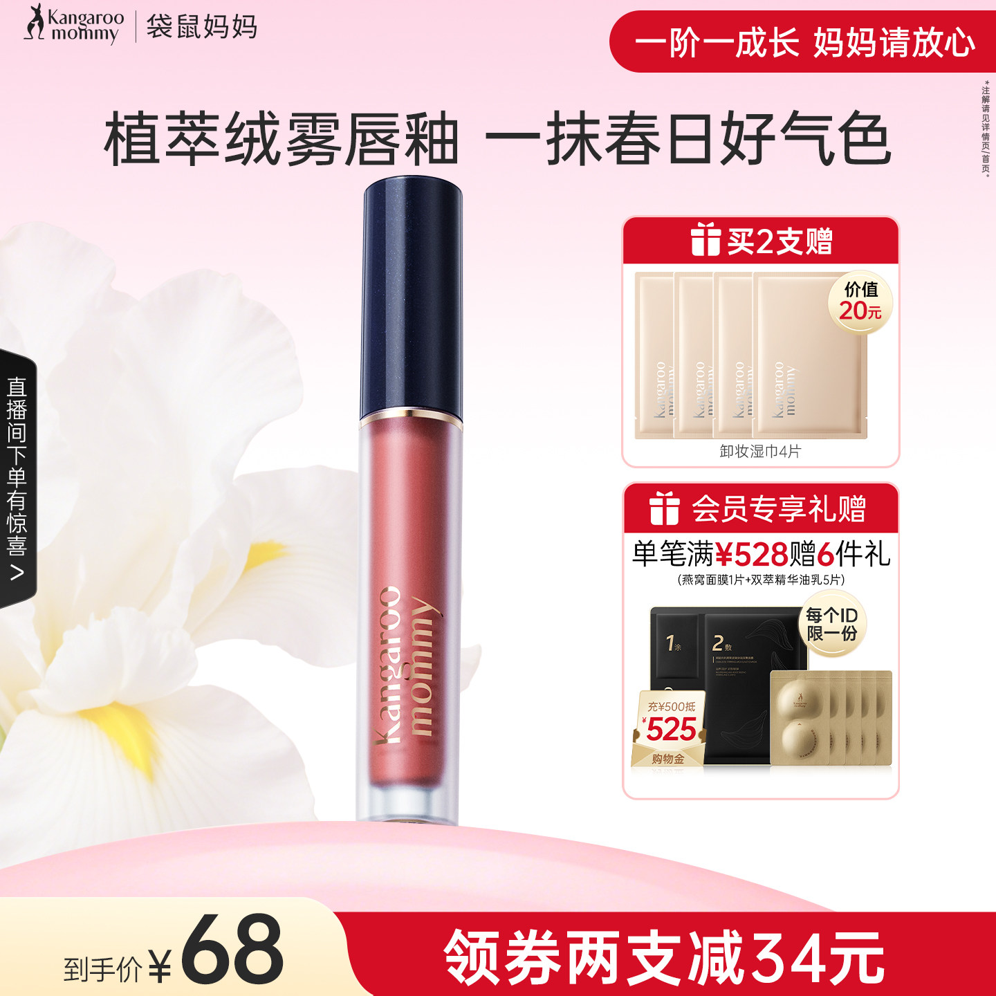 【小鱼海棠推荐】袋鼠妈妈准孕妇口红可用唇膏彩妆专用化妆品唇釉