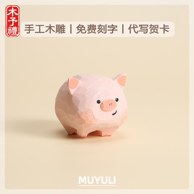 手工木雕丨小猪实木质桌面车内装饰生肖摆件送女生的生日礼物闺蜜