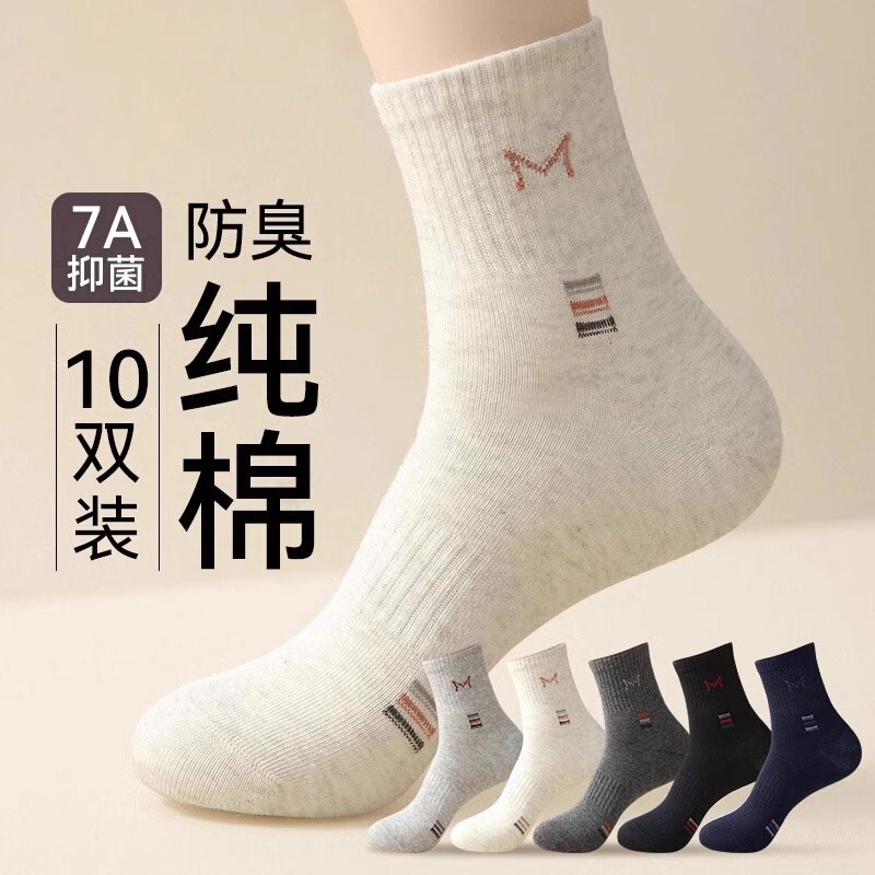纯棉袜子男防臭7a抗菌中筒袜秋冬吸汗运动冬季全棉长袜男士袜子