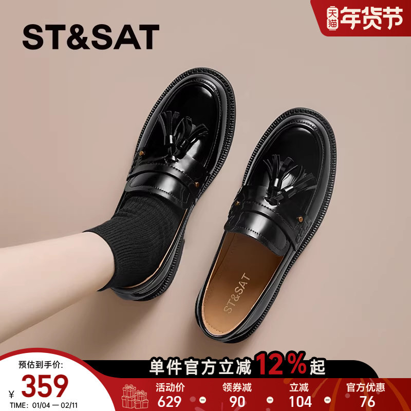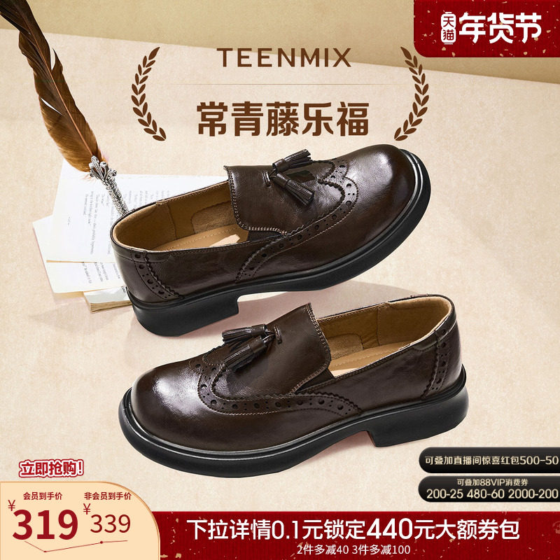天美意流苏厚底英伦常青藤乐福鞋女鞋子复古单鞋小皮鞋2025秋新款