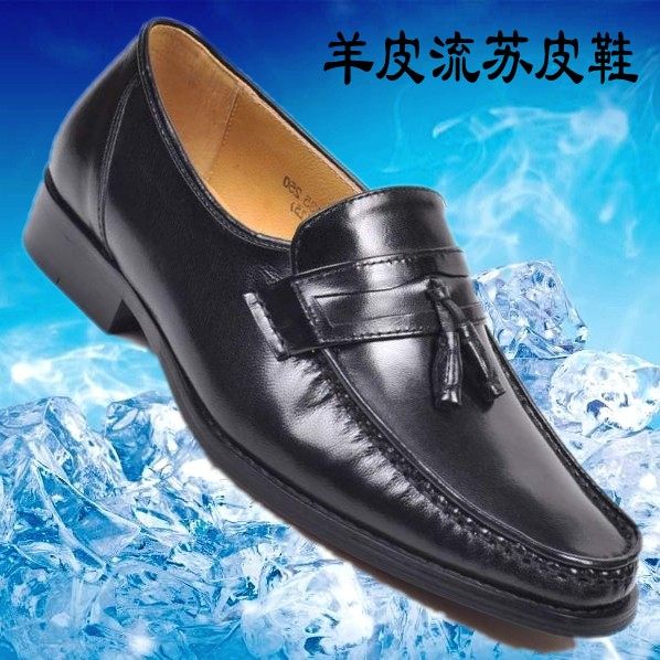 流苏皮鞋烧麦商务正装皮鞋羊皮单鞋真皮英伦休闲透气短脸透气套脚