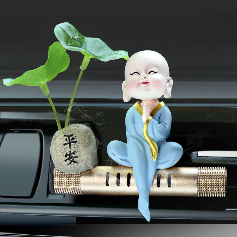 汽车车载香水空调出风口固体香薰创意个性装饰摇头小和尚清新香膏