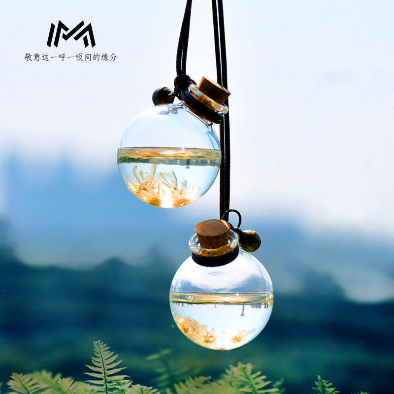 汽车车载香水瓶永生花香水玻璃空瓶挂件车挂小清新干花挂式装饰瓶