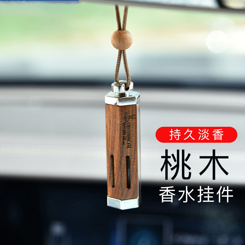汽车车载香水纯桃木车内后视镜挂件男款吊饰高档大气木质男士吊坠