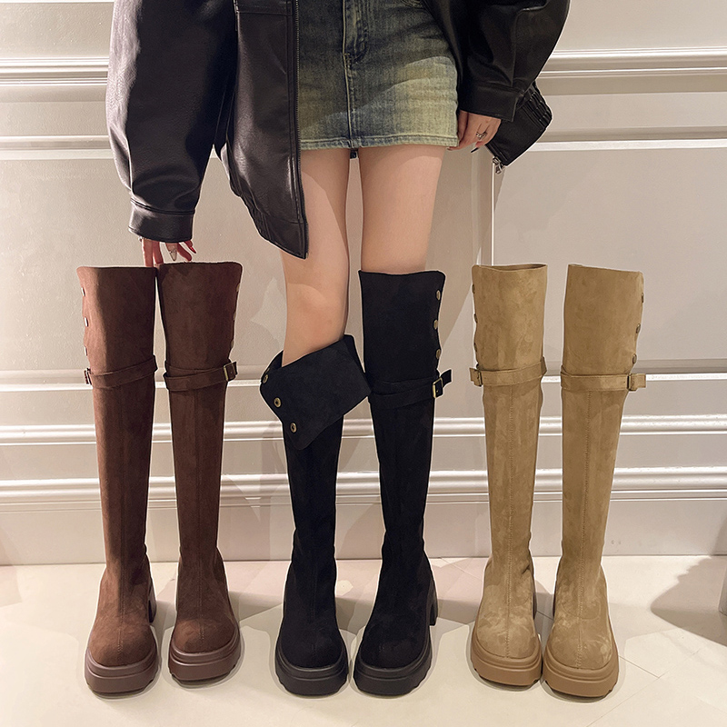 美拉德厚底过膝两穿翻折骑士靴子胖mm粗腿显瘦高筒长靴女冬加绒
