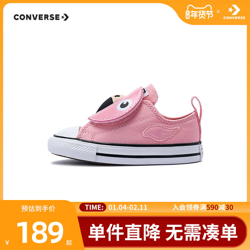 匡威童鞋婴童低帮帆布鞋2025新款女童爱心魔术贴休闲鞋A08380C