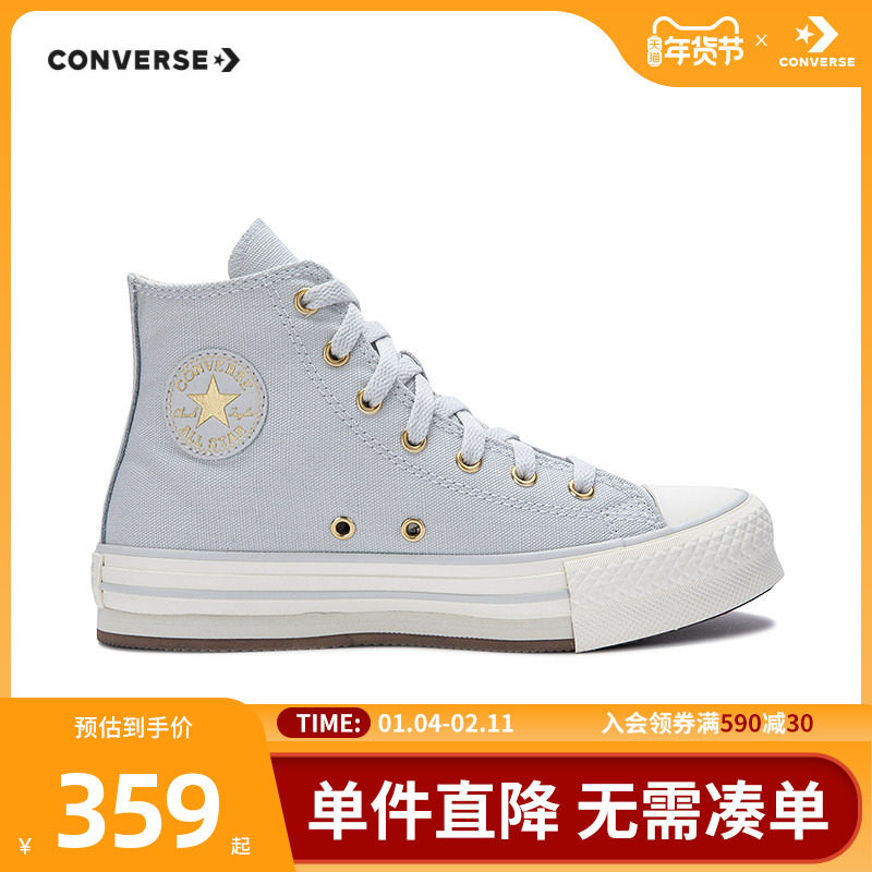匡威童鞋儿童帆布鞋女童鞋子系带高帮厚底洋气时尚休闲鞋A10703C