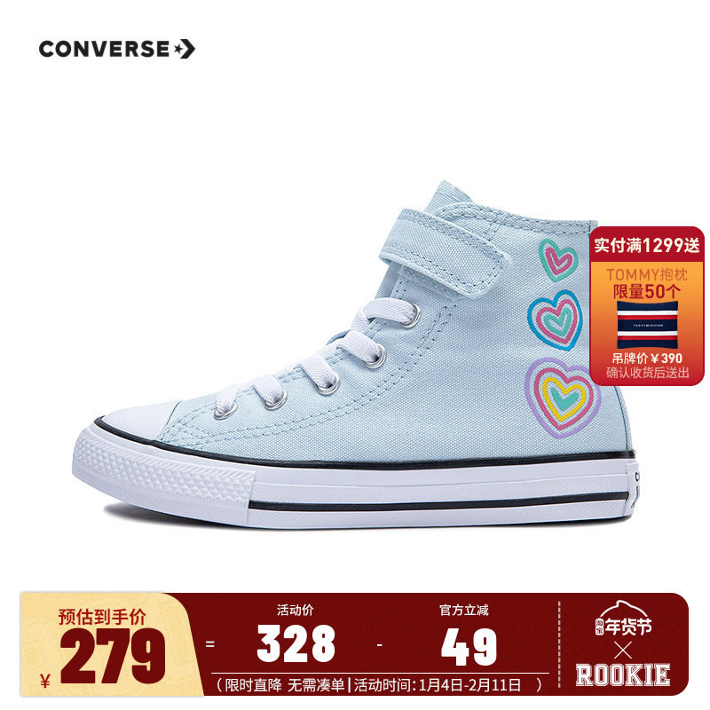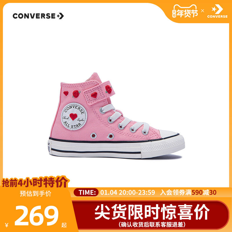 匡威童鞋儿童帆布鞋女童粉色鞋子魔术贴高帮爱心休闲鞋潮A10714C