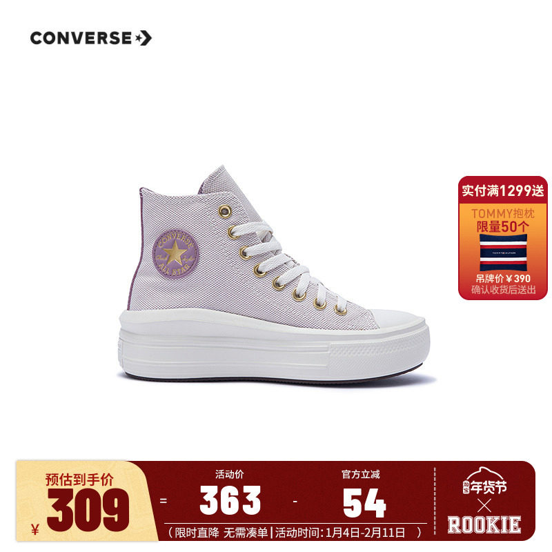 匡威童鞋儿童帆布鞋女童鞋子系带高帮厚底洋气紫色休闲鞋A12617C
